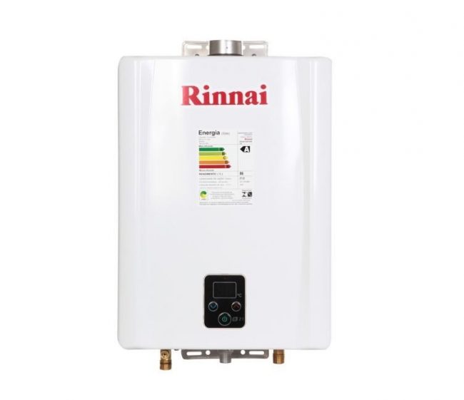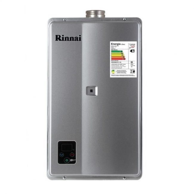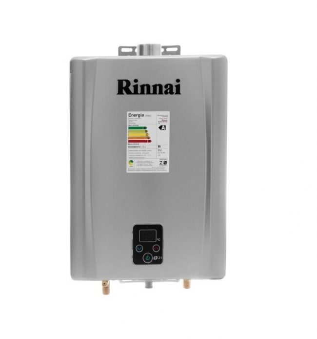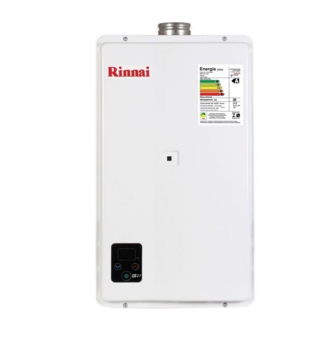 Aquecedor a Gás RINNAI M15 FE CARACTERÍSTICAS Exaustão Forçada Sistemas de Segurança Integrados 2 Anos de Garantia * Duto de exaustão 60mm Bivolt com chaveamento HH Acendimento automático Especificações técnicas Dimensões (mm) AxLxP 610 x 350 x 190 Tipo de Gás GLP GN Potência Nominal 21.590 (kcal/h) 20.927 (kcal/h) Vazão aproximada de Água (com misturador)…
