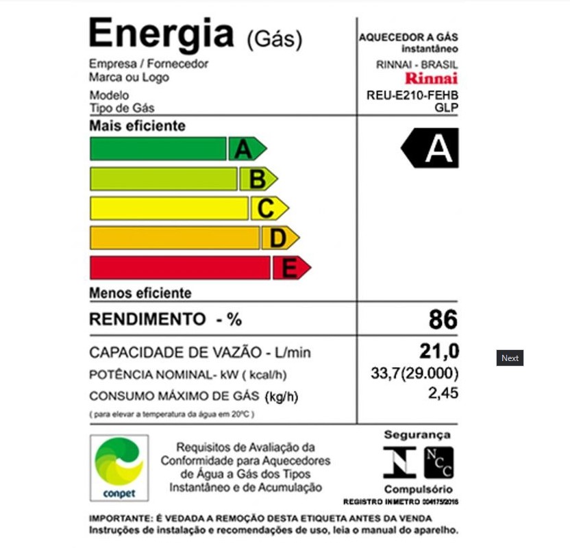 AQUECEDOR A GÁS RINNAI E21 FEH GLP PRATA